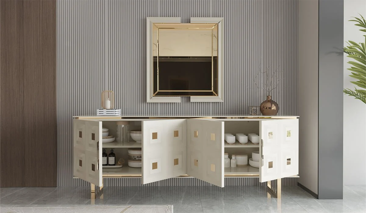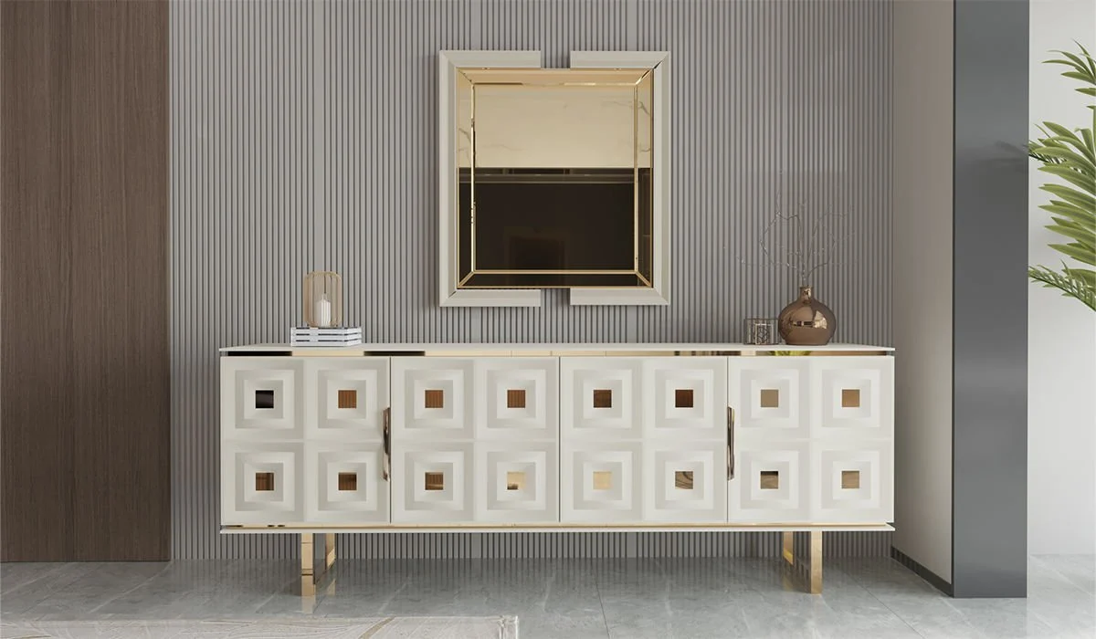 Vanesa Konsollbord & Speil - Perlet Hvit 15 990,- På lager. Legg i handlekurv Del Artikkelnummer: MDL32 Produktbeskriving Tilbakemeldinger SpesifikasjonerInnhold:1x Vanesa konsollbord1x Vanesa SpeilStilElegantUtseendeHøyglans Perlet Hvit fargeMaterialeSpon, Plast, StålBenForkrommet StålStørrelseL213,8 cmH80,2 cmB50 cmPakningFlatpakketGraranti24 måneder