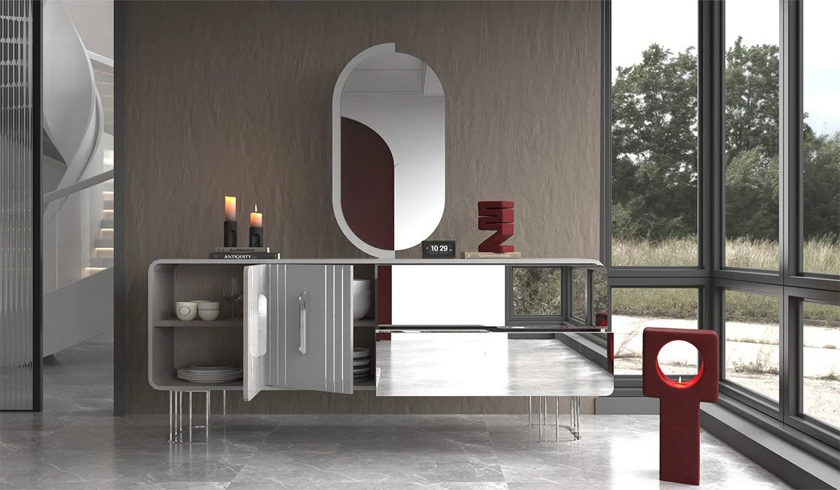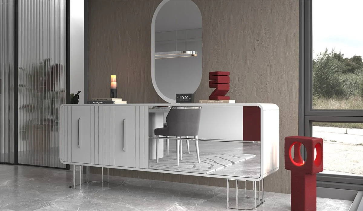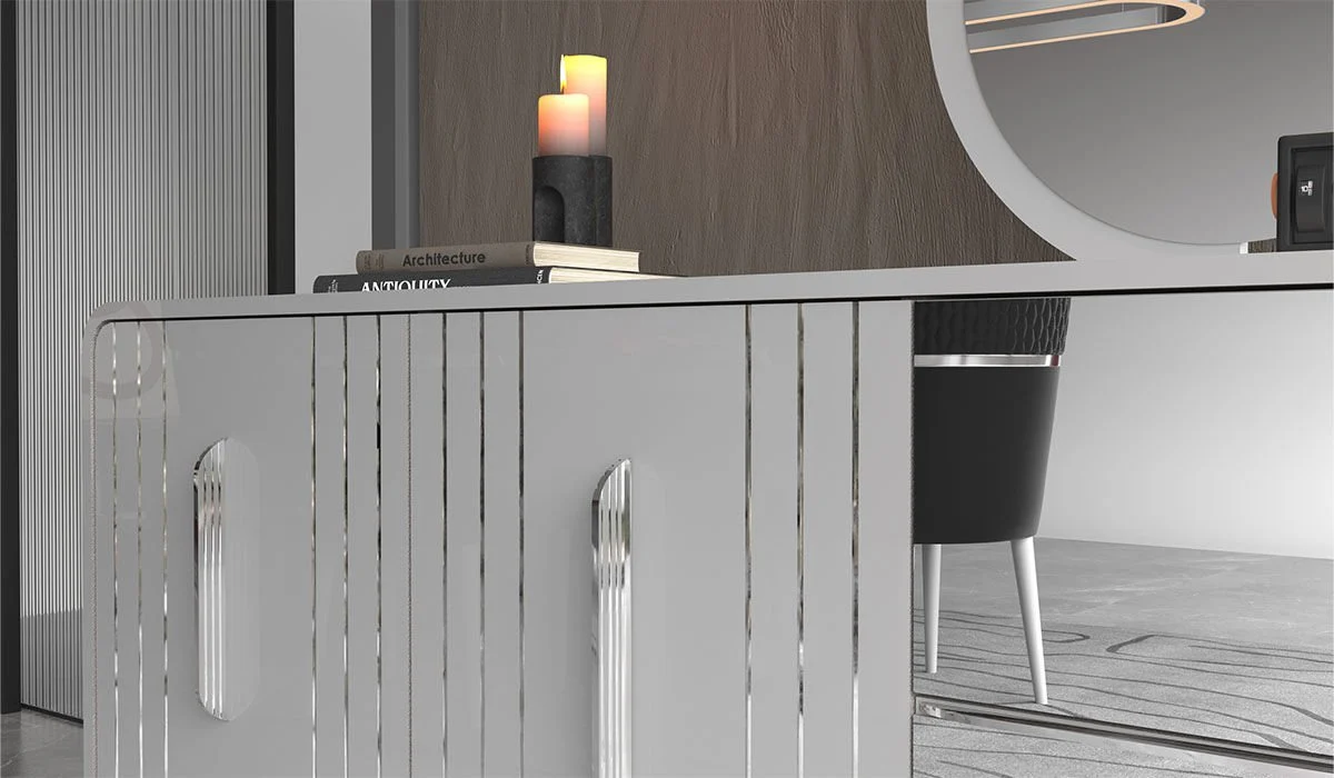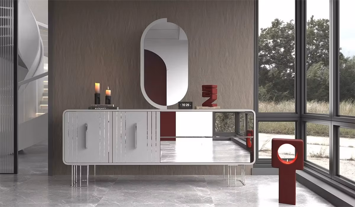 Veyron Konsollbord & Speil - Grå 11 590,- På lager. Legg i handlekurv Del Artikkelnummer: MDL29 Produktbeskriving Tilbakemeldinger SpesifikasjonerInnhold:1x Veyron konsollbord1x Veyron SpeilStilElegantUtseendeHøyglans Grå farge, SpeilMaterialeSpon, Plast, StålBenForkrommet StålStørrelseL200 cmH84 cmB45 cmPakningFlatpakketGraranti24 måneder