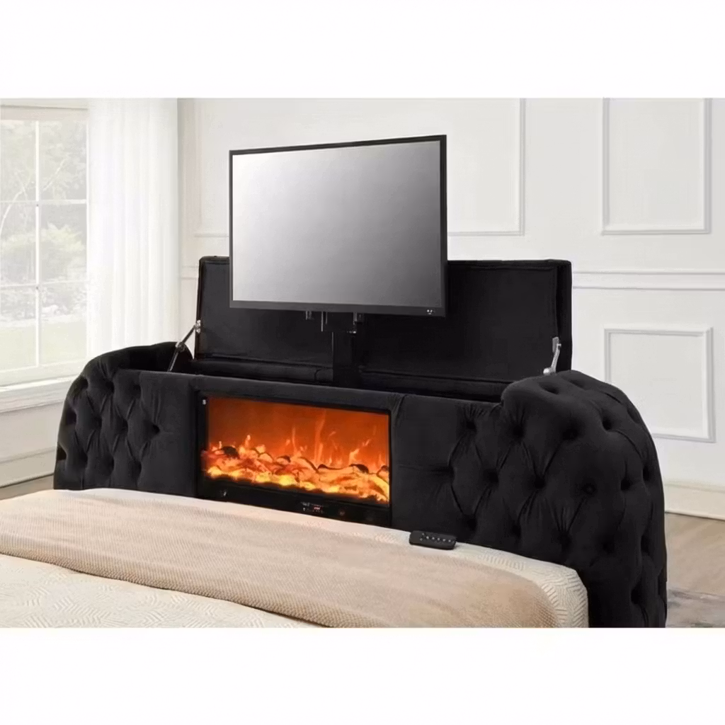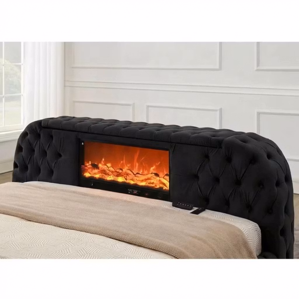 Chesterfield Flame (TV) forener klassisk eleganse med moderne detaljer. Den tuftede Chesterfield-stilen sammen med den innebygde dekorflammen gir soverommet en varm og eksklusiv atmosfære.