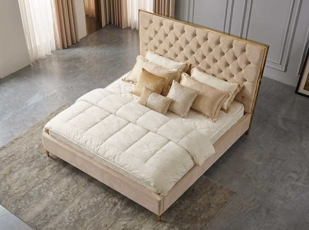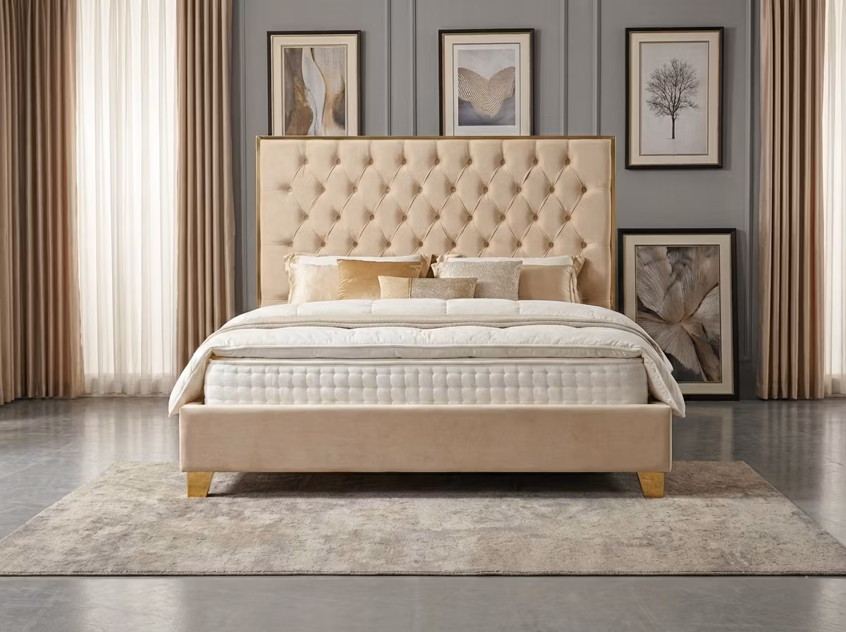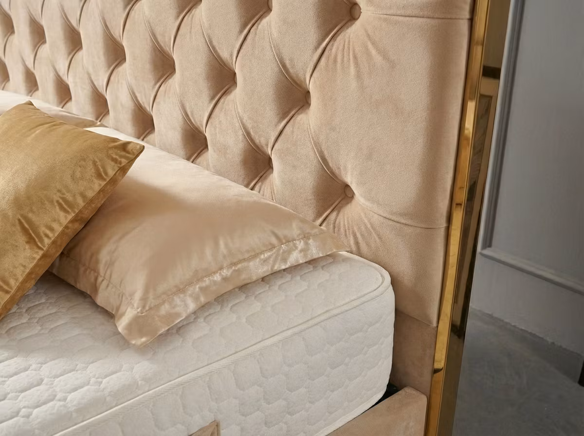 Monaco er en seng som kombinerer klassisk design med moderne detaljer. Den er trukket i myk velourfløyel som gir et eksklusivt uttrykk, mens de stilrene metallbena tilfører et moderne løft.