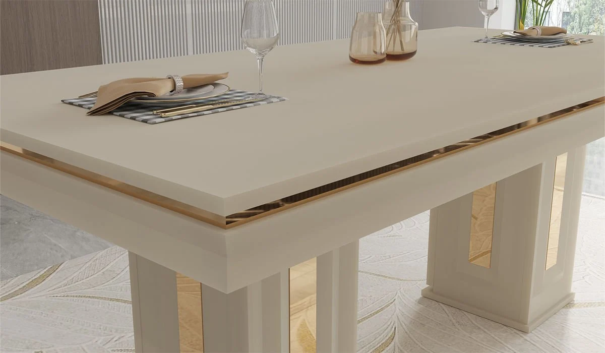 Vanesa Spisebord 8 990,- På lager. Legg i handlekurv Del Artikkelnummer: MDL44 Leverandør: Møbelby Produktbeskriving Tilbakemeldinger SpesifikasjonerStilLuksuriøstUtseendeHøyglans perlet Hvit fargeMaterialeSpon, plastBenSponStørrelseL-190cm X B-92cm X H-75,5cmPakningFlatpakketGraranti24 måneder